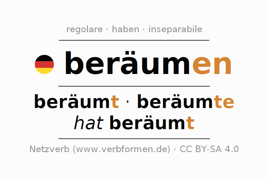 Le forme della coniugazione di beräumen (liberare, rimuovere) al congiuntivo I sono: ich beräume, du beräumest, er beräume, wir beräumen, ihr beräumet, sie beräumen